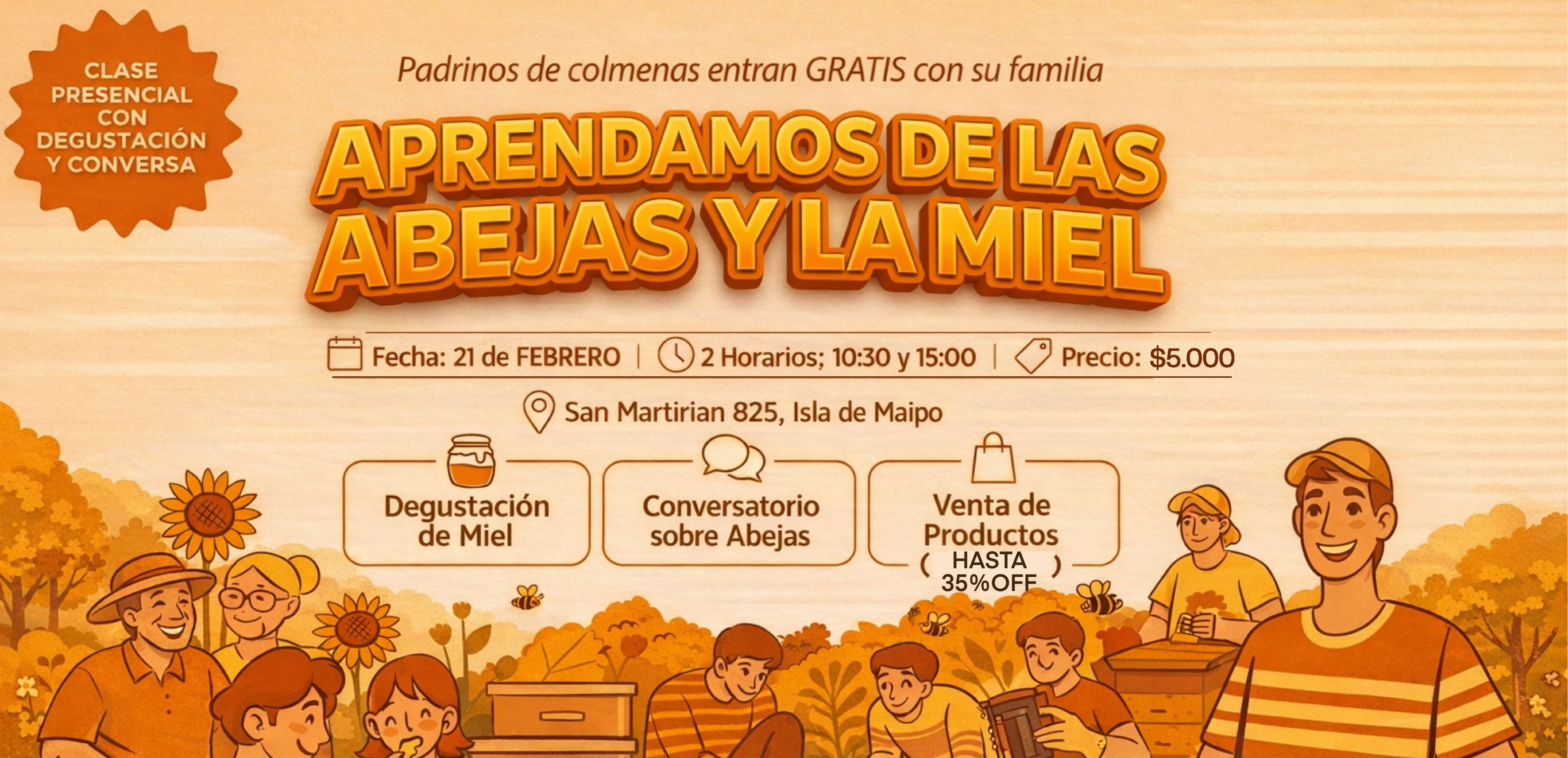 - Ven a descubrir, entender y disfrutar cómo funciona una colmena desde lo más básico, qué hacen las abejas para producir la Miel, y por qué hay mieles con aromas, colores y texturas tan diferentes. Tendremos mieles para degustar en la Tienda y hasta 35%OFF