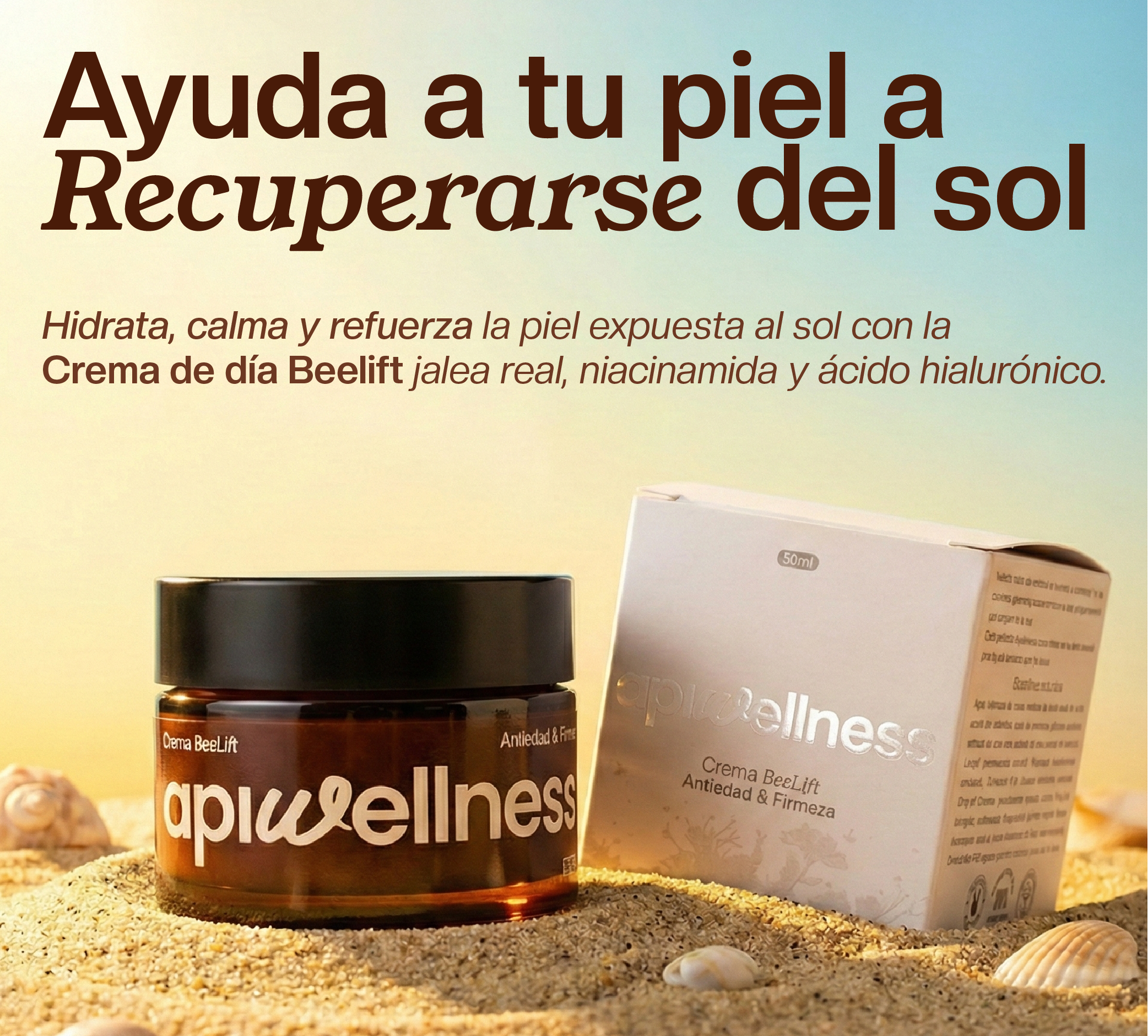 La Crema Beelift Antiedad & Firmeza está formulada para acompañar la recuperación diaria de la piel expuesta al sol, aportando hidratación profunda, confort y equilibrio